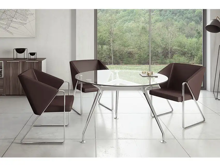 Elegante mesa de negocios con terminados de lujo, su diseño moderno se adapta a distintos ambientes.