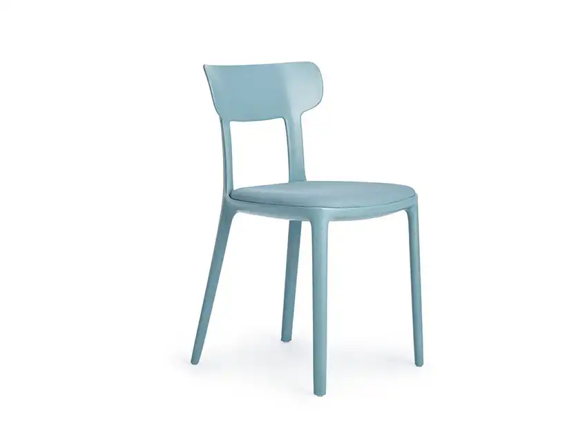 Silla con estructura de 4 puntos con fibra de vidrio y asiento tapizado. La combinación del diseño tradicional de las sillas de madera con nuevos materiales, hace trascender a la silla canova a nuevas generaciones.