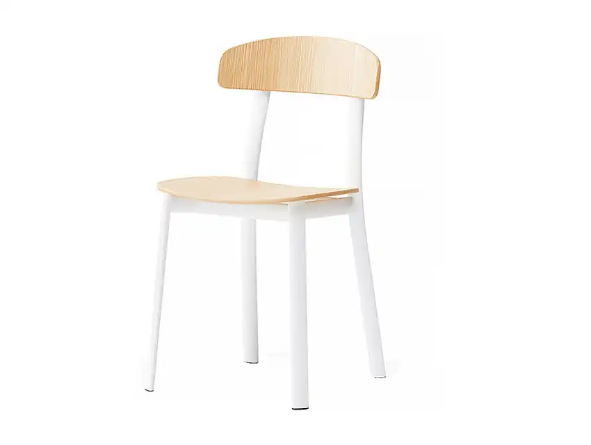 Silla bistro con estructura de tubular elíptico de acero con acabados en pintura epóxica. Asiento y respaldo en madera de fresno. Inspirada en el sombrero de 2 puntas del siglo XVIII, la silla Feluca brinda un sentido de movimiento eliminando cualquier rigidez y enalteciendo la armonía y el refinamiento.