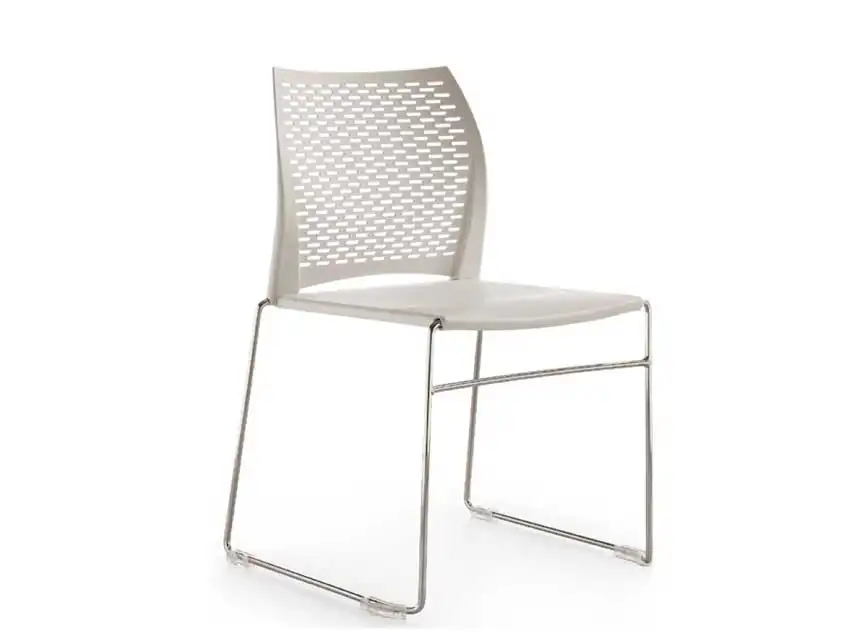 Base en varilla de acero cromado, asiento en polipropileno y respaldo perforado reforzado con fibra de vidrio. Delgada, robusta y muy versátil, la silla Net viene con un nuevo respaldo de diseño perforado, que proporciona una personalidad adicional.