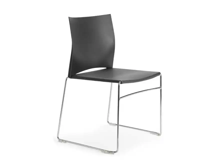 Asiento y respaldo en polipropileno con opción de tapizados. subasiento de polipropileno. Bastidor de barra metálica de acero cromado de ø11 mm de elevada resistencia. Diseñada específicamente para ser altamente apilable. web es la solución perfecta para decorar espacios públicos, salas de conferencia o de conciertos.