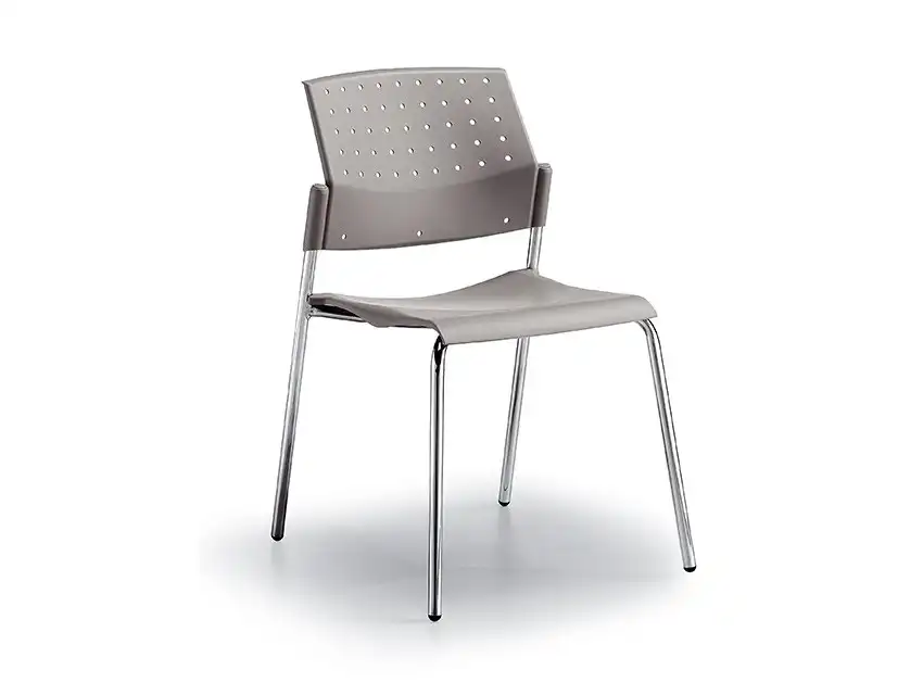 • Silla con asiento y respaldo en polipropileno, con base de cuatro patas.