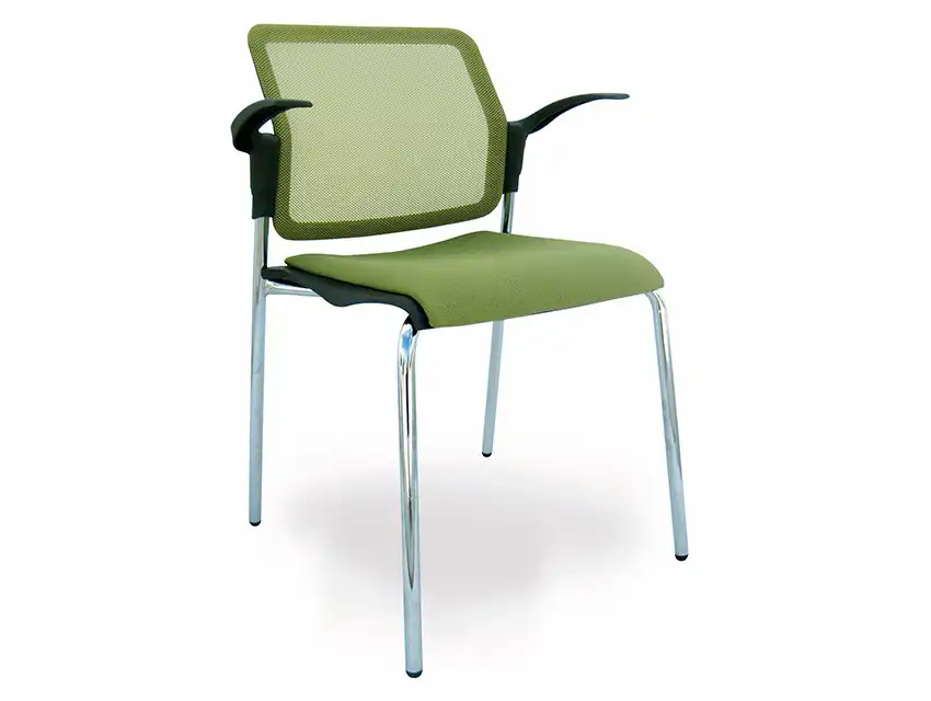 Silla con asiento de polipropileno c/tapiz y respaldo tapizado en malla, con base de 4 patas en tubular de acero cromado, para uso interno.