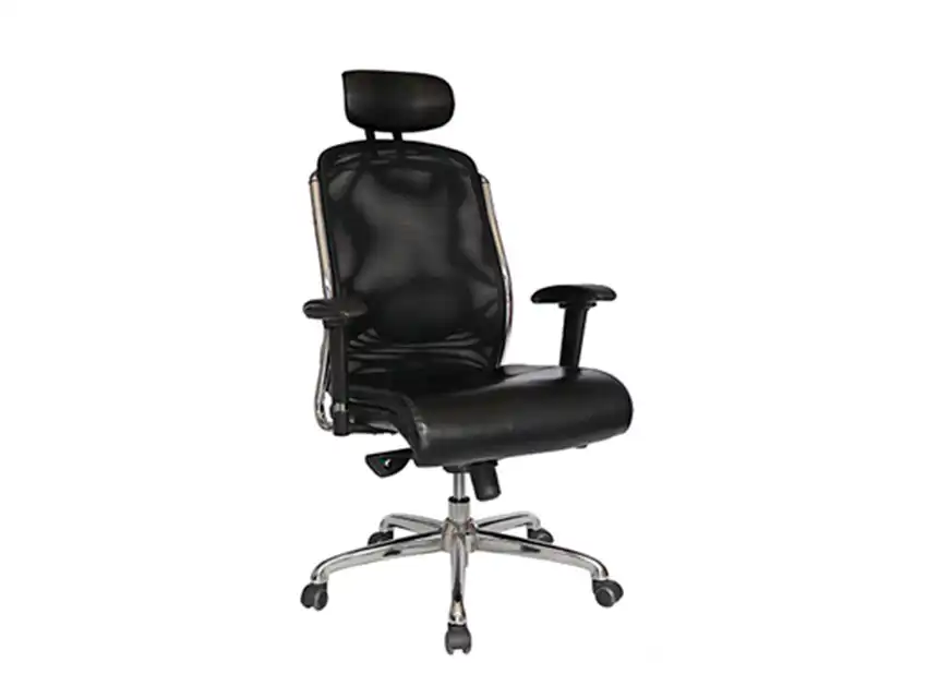 Respaldo: en malla de diseño ergonómico con cabecera acojinada y tapizada.